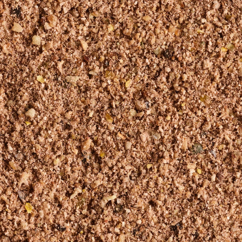 Chapelure, Maïs, biscuit, chenevis moulu grillé (10%), PV1 (blé, mélasse).