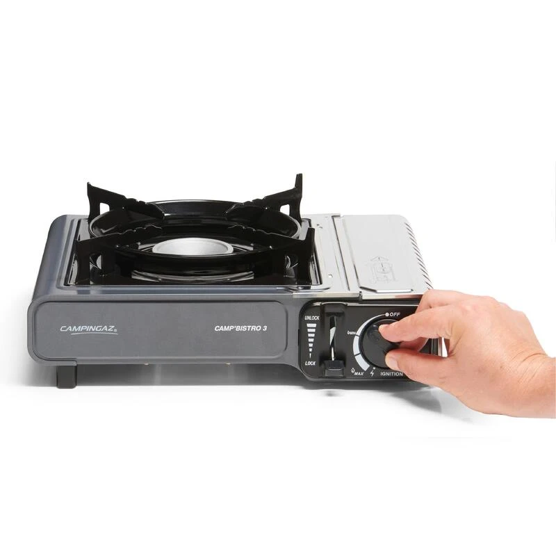 Conçu pour le campeur souhaitant un réchaud 1 feu pour une excellente stabilité, simple à utiliser et à transporter grâce à sa mallette de rangementAvec allumage automatique Piezo, cartouche facile à clipser, valise de transport.
