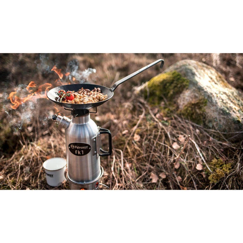 Cette belle poêle en fonte compacte a un diamètre de 20cm, parfait pour une utilisation autour d’un feu de camp et toujours facile à transporter grâce à sa taille.