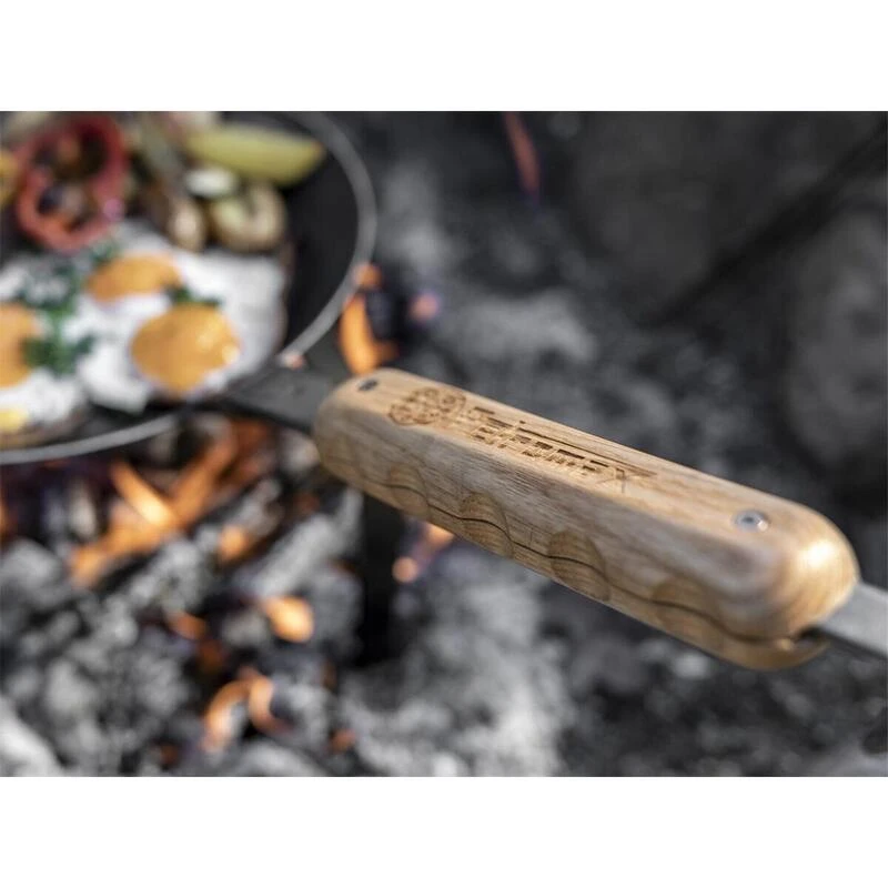 La poignée en bois magnétique s’attache facilement à la poêle en fonte d’une seule main grâce au système de fermeture magnétique.