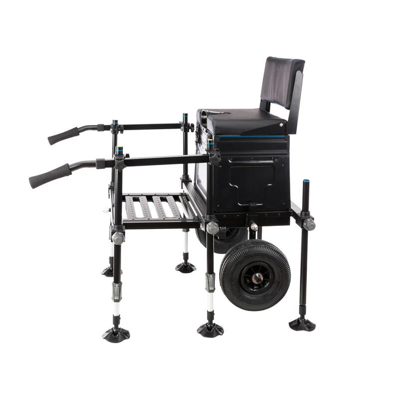 Nos équipes de conception ont conçu ce produit afin de faciliter le transport de son matériel jusqu’à votre poste de pêche avec une grande capacité de stockage.Très facile à transporter, cette station reste stable sur tous les terrains grâce à ses pieds larges et télescopiques. Ses rangements vous permettent de transporter tout votre matériel facilement.